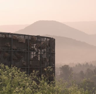 The gabion walls at Infinite Rise are more than a boundary; they are a medium for exploration. As sunlight shifts throughout the day, the walls cast intricate patterns of light and shadow, creating a dynamic interplay that adds depth and intrigue. The filtered views through the walls evoke curiosity and invite exploration, whilst offering glimpses of the surrounding mountains from varying perspectives.