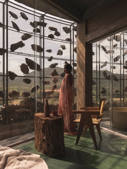 Earthscape Studio seamlessly merges human-centric elements within the breathtaking Tamil Nadu landscape to create a raw and engaging architectural work of art.