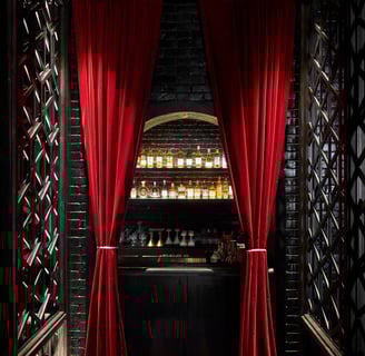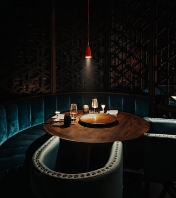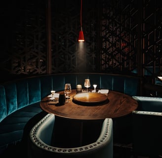 Among the many places to dine, Duck Laundry offers a distinct shift in tone. Step inside and the palette deepens with an intentional sensory experience. Jade velvet banquettes curve around dark timber tables. Light is softer here, reflecting off polished surfaces and red-glazed ceramics.